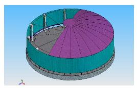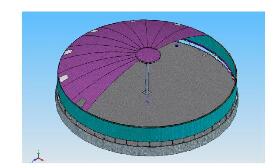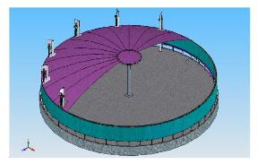 3、立中心傘架,如為拱頂罐安裝頂蓋,頂板立柱處開天窗: